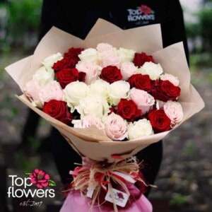 Подарете класика, която никога не излиза от мода - букет само от рози. Червени, розови, бели или комбинирани - розите са символ на любов, елегантност и внимание.