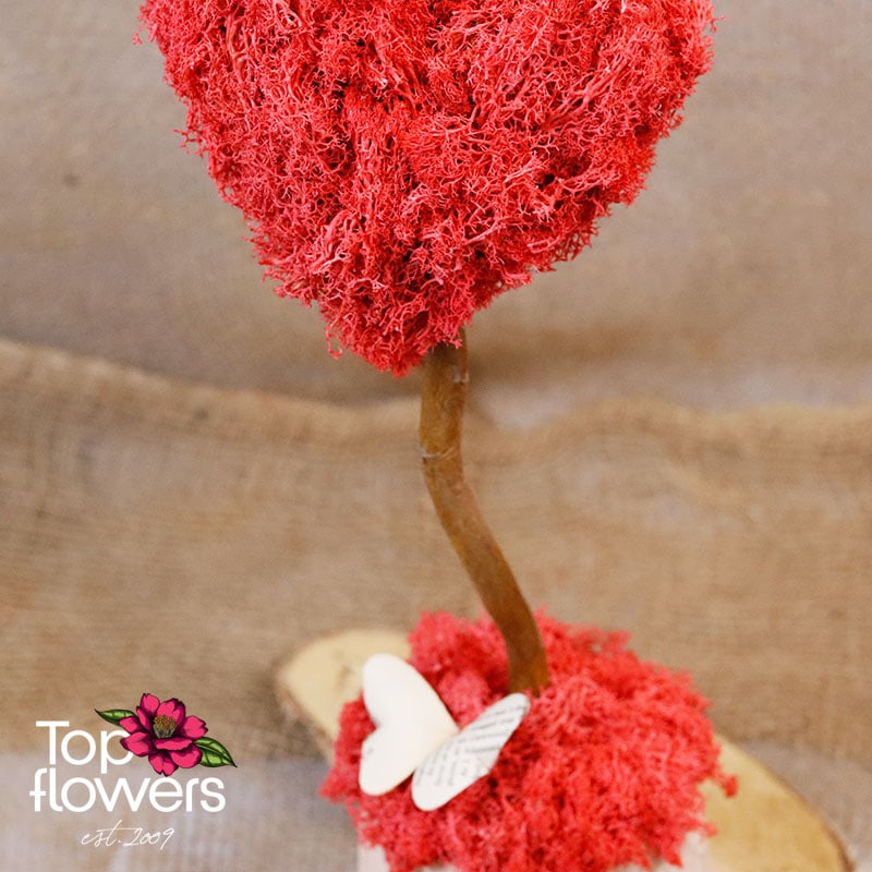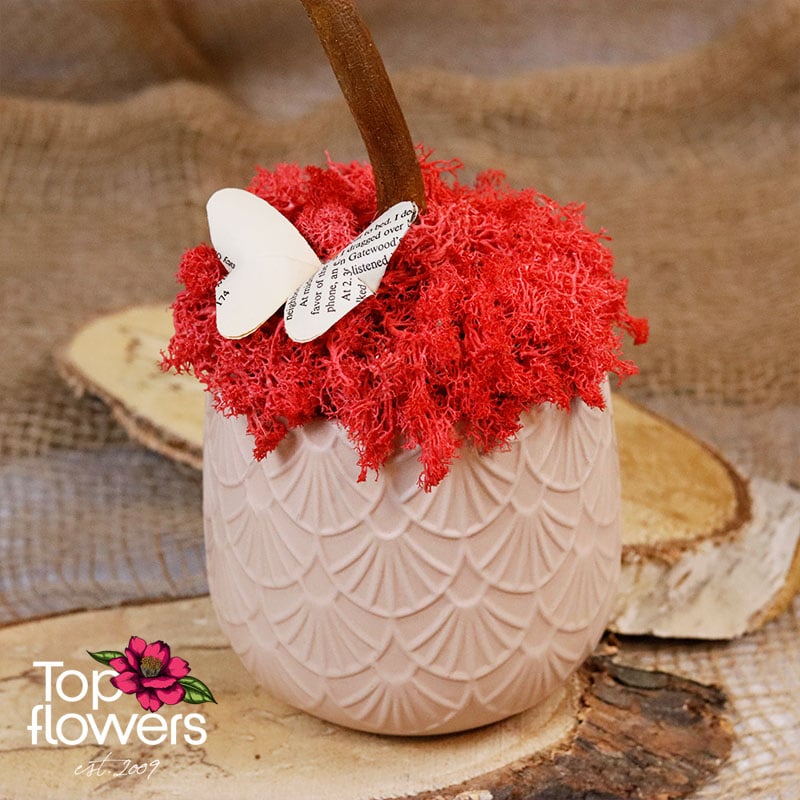 Scandinavian moss is a natural material with a long-lasting appearance – it requires no watering, does not wilt, and preserves its color and shape over time. That is why “Red Passion” is not a fleeting mood, but a lasting symbol of feeling. The ceramic pot adds a soft contrast and stability, while the natural decorative elements give the composition a finished look and character.