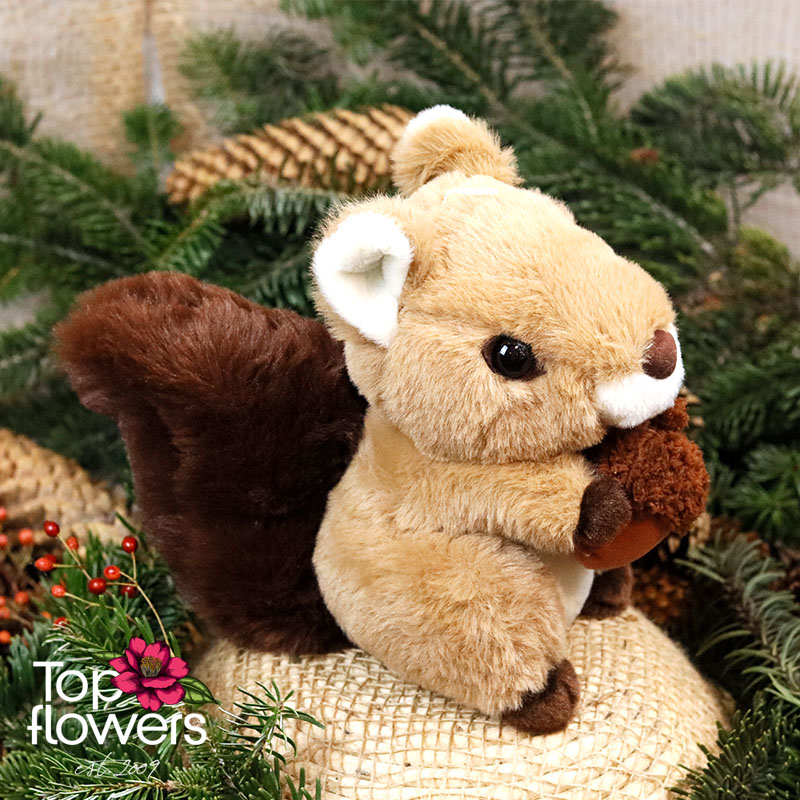 The adorable plush squirrel is the perfect gift for children and adults who love nature and animals. Made from premium soft plush, it feels wonderfully gentle to the touch, while its sweet expression and fluffy tail will melt any heart. Measuring about 20 cm, it’s perfect for cuddling, decoration, or as a charming addition to a flower gift box from Top-Flowers.