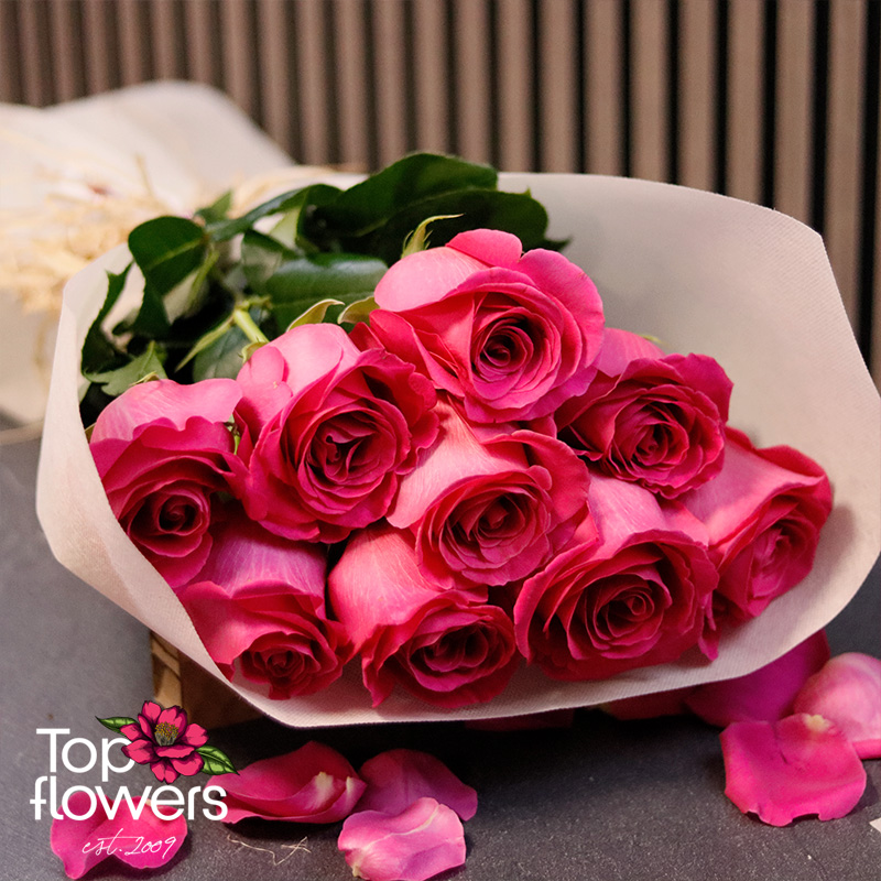 The bouquet of cyclamen pink roses is a fresh, bright and deeply emotional gesture - the kind of flowers that instantly catch the eye and bring joy. The rich cyclamen pink color speaks of tenderness, admiration, happiness and special attention, without feeling too formal. This is a bouquet that brings warmth and a smile from the very first moment.