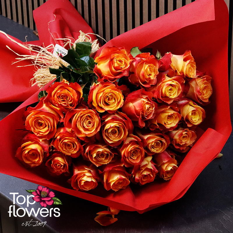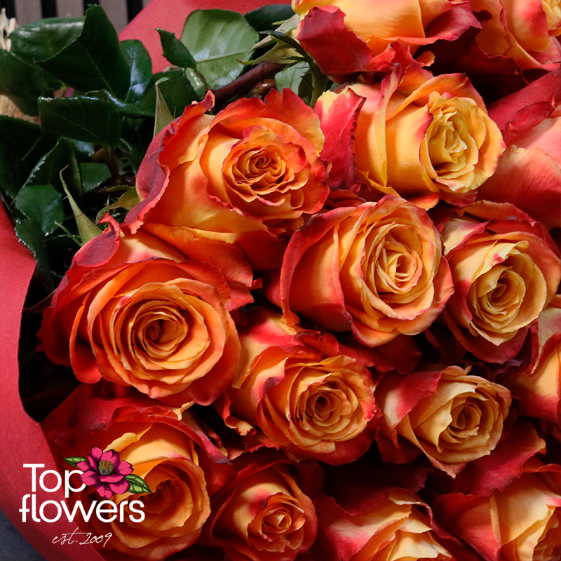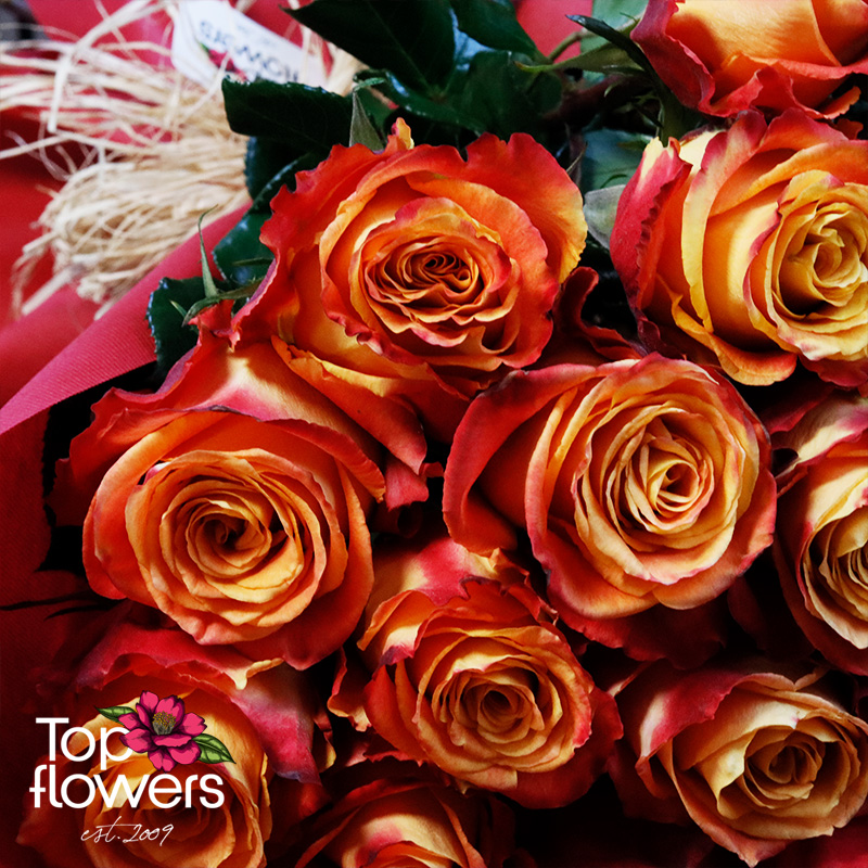 The bouquet of fiery roses is a bright, warm, and memorable gesture - created for moments when you want to give an emotion with character. The flowing shades of yellow, orange, and red bring a sense of sunshine, passion, joy, and a strong presence.