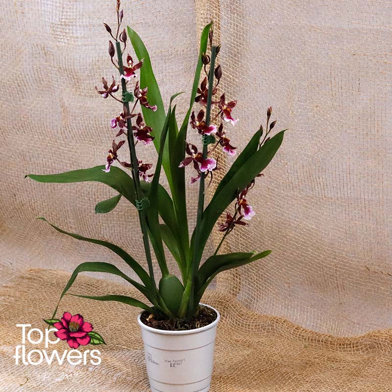 The elegant Cambria orchid is a symbol of refinement and harmony. With its star-shaped blossoms in rich shades of burgundy, pink, and white, it brings a sense of class and warmth to any home. Cambria is a hybrid created through the crossbreeding of various orchid species, making it highly adaptable and easier to care for than the classic Phalaenopsis.
