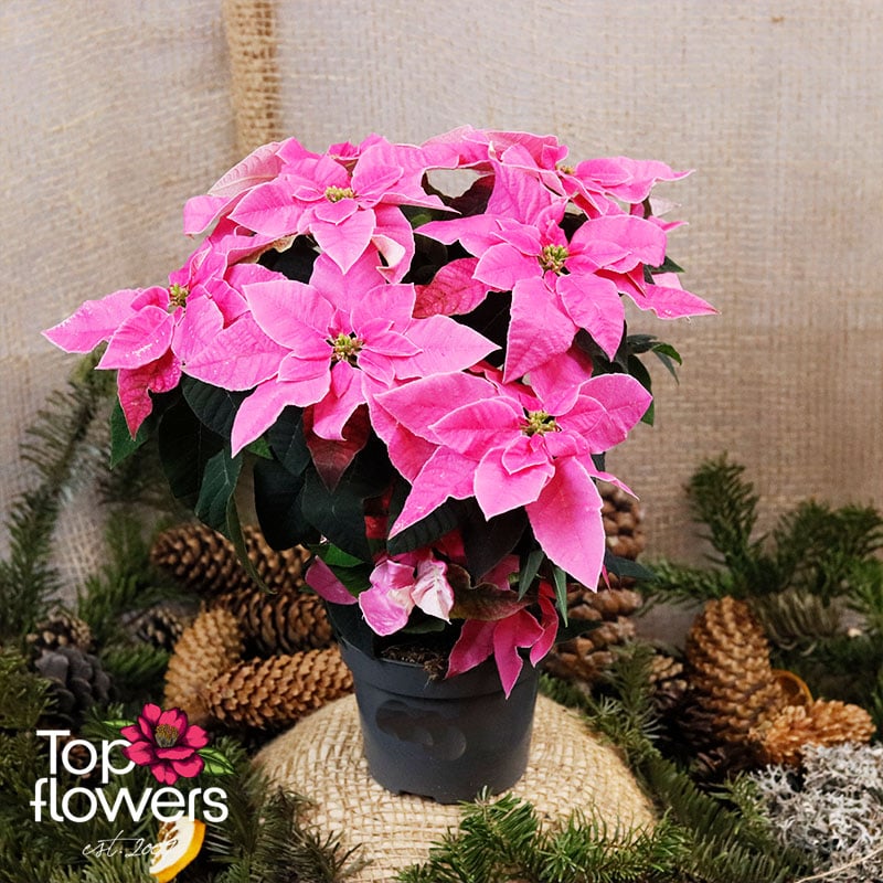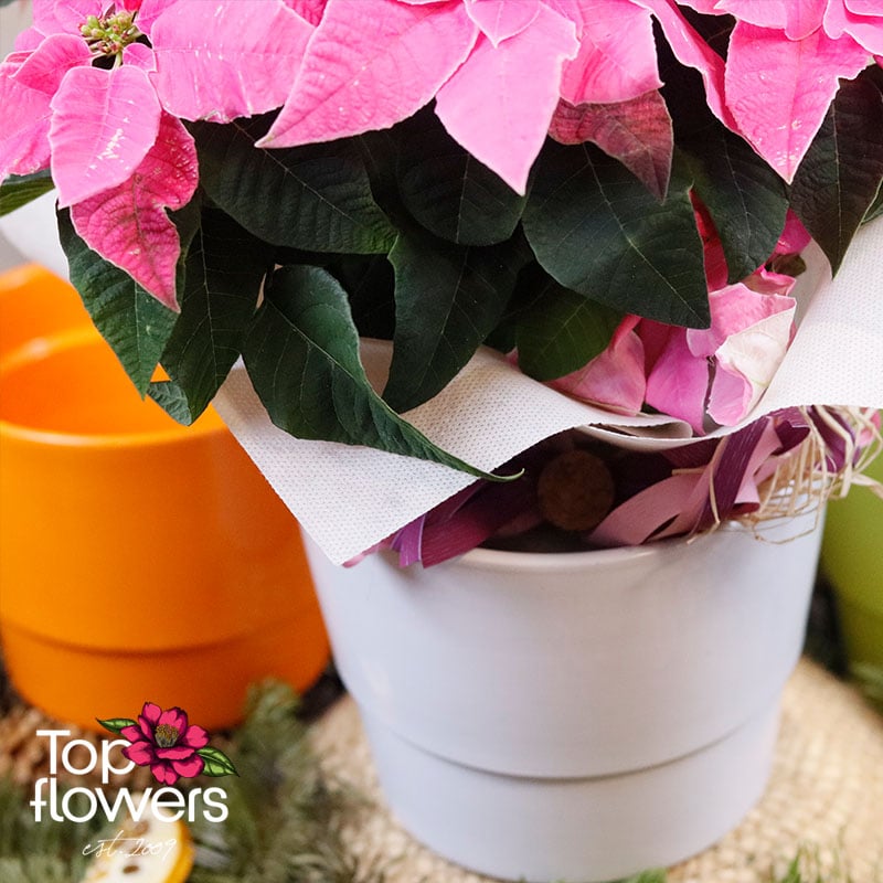 The Pink Poinsettia is that gentle winter flower that instantly creates a festive mood. At our flower shop, we select each plant with care, knowing how important it is for the holiday atmosphere. This variety, with its soft pastel-pink bracts, is a beautiful alternative to the classic red and brings style, lightness, and a modern twist to the traditional look.