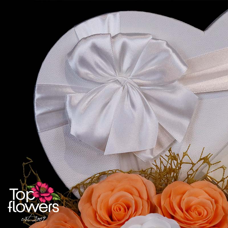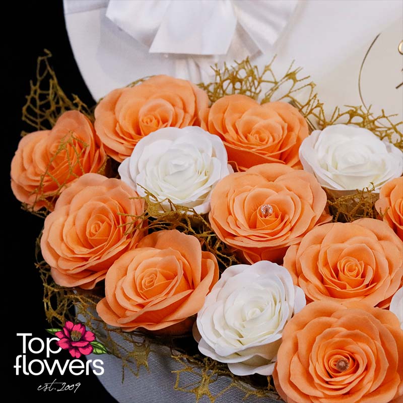 Gentle Heart is a gift created to express care, tenderness, and warm emotion in a refined and delicate way. The composition of soap roses in soft peach and white tones is arranged in an elegant heart-shaped box – a symbol of pure affection, harmony, and a sincere gesture. The flowers here are not just a beautiful detail, but a message that lasts over time.