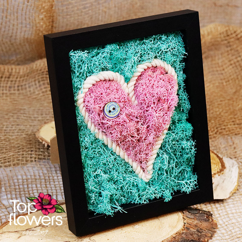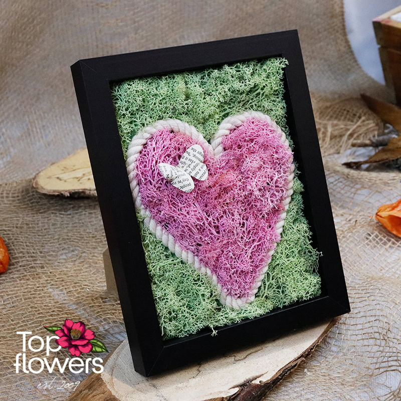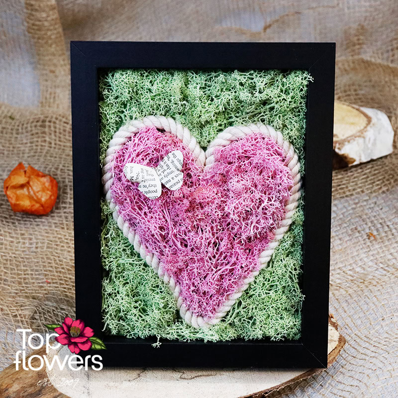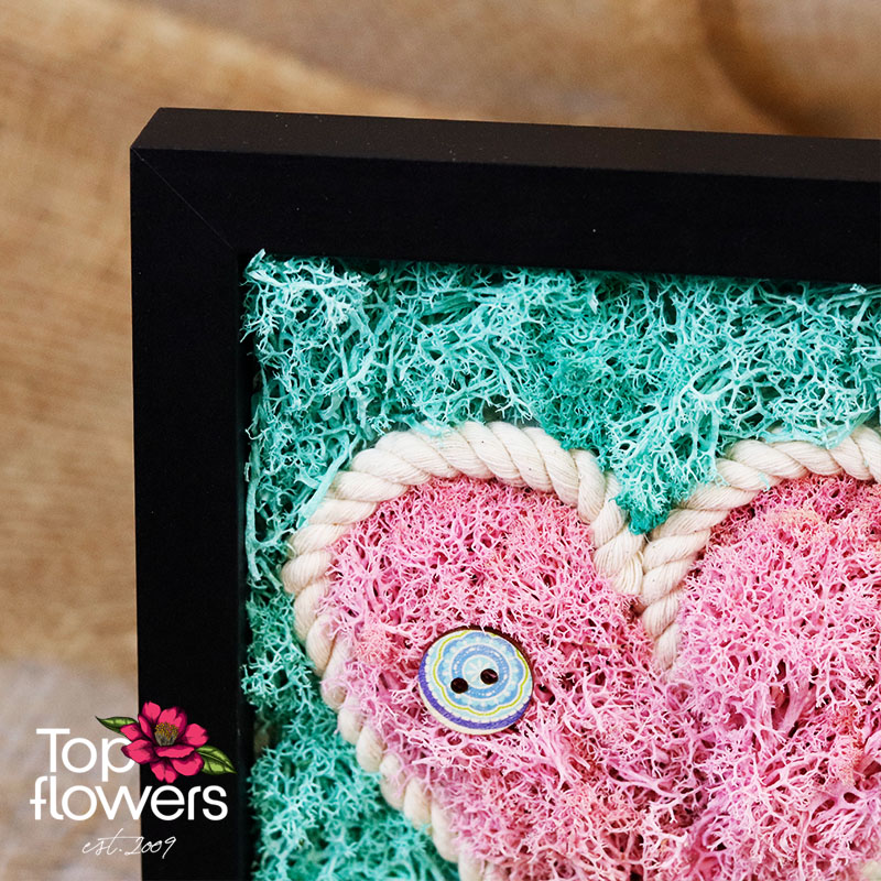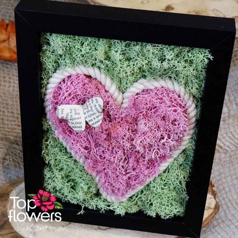 Living Picture | Vow is a symbol of a promise that is not spoken aloud, but deeply felt. The composition is created from natural materials and colored Scandinavian moss, arranged in the shape of a heart – a form that here is not a romantic cliché, but a sign of constancy, loyalty, and deep connection. The colors are balanced and vibrant, yet never overwhelming – present quietly, just like true feelings.