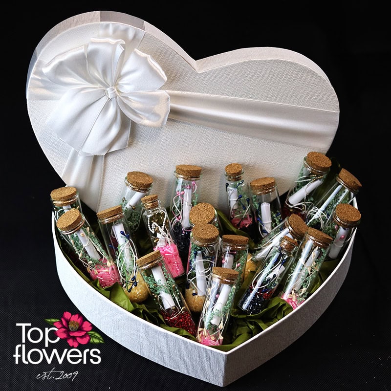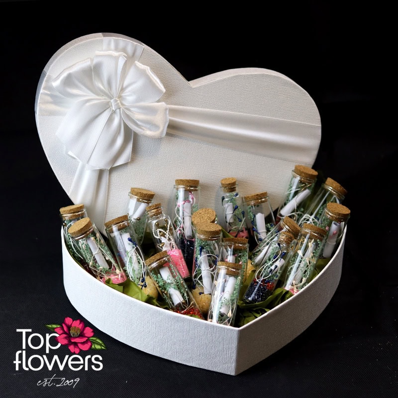 Each tube is exquisitely decorated with miniature pearls, dried flowers, and delicate threads, enhancing its elegance and mystery. Inside, you’ll find words of happiness, love, success, or an inspiring thought that will bring joy to the recipient.