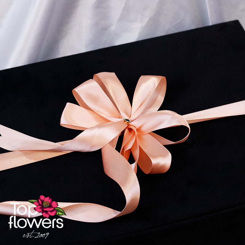 The tissue paper and elegant ribbon highlight the finesse of the composition, while the velvet decorative box gives it a finished, luxurious look. This is a gift that needs no extra words – it speaks for itself.