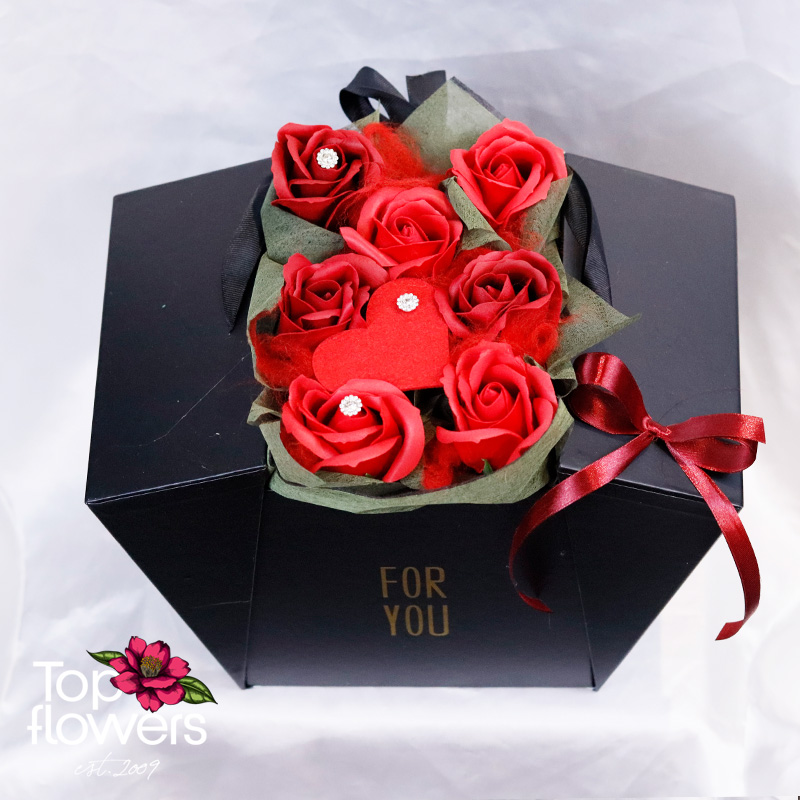 Secret Passion | Soap Roses in a Box is a composition with a clear message – strong, emotional, and unforgettable. The deep red of the soap roses symbolizes love, desire, and a profound connection, while the arrangement in an elegant luxury box turns the gift into a meaningful gesture. These are flowers that are not just given – they are remembered.