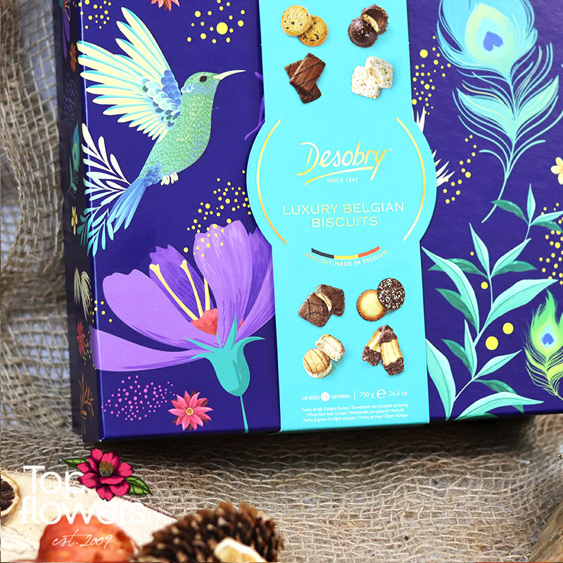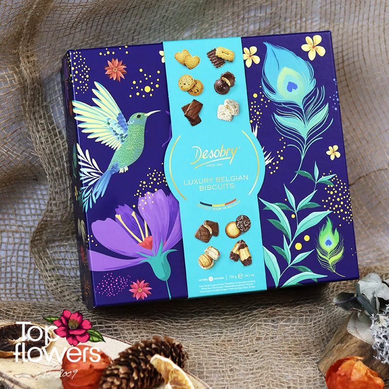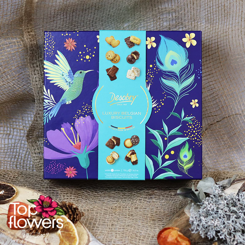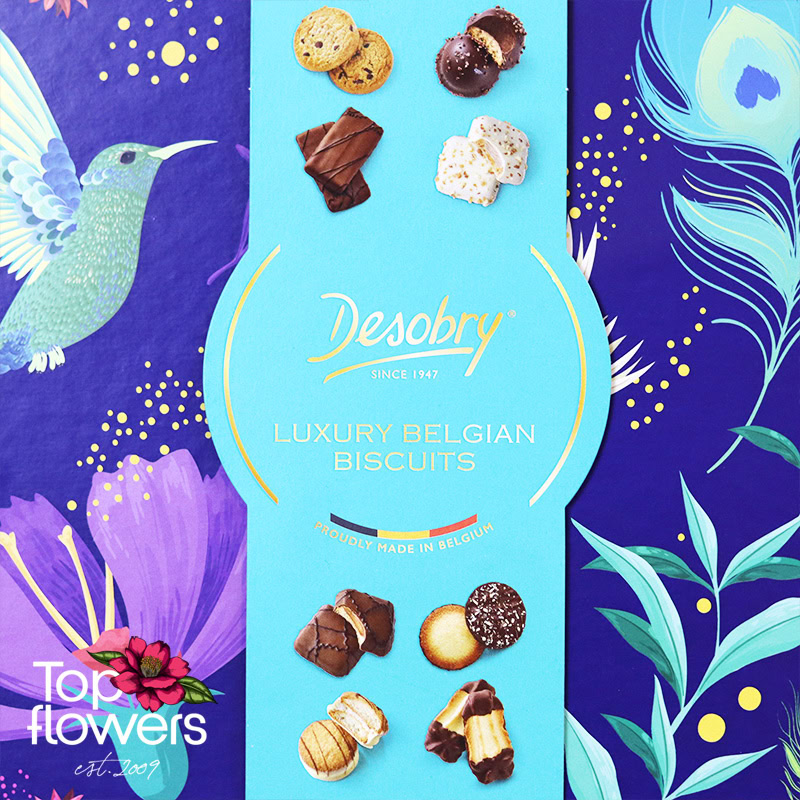 Понякога най-малкият детайл прави подаръка наистина завършен… А когато става дума за изискани бисквити Desobry, този детайл се превръща в истинско удоволствие. Селекция от фини белгийски бисквити, съчетаващи различни вкусове, текстури и шоколадови акценти – идеалното допълнение към всяка поръчка от нашия магазин за цветя.