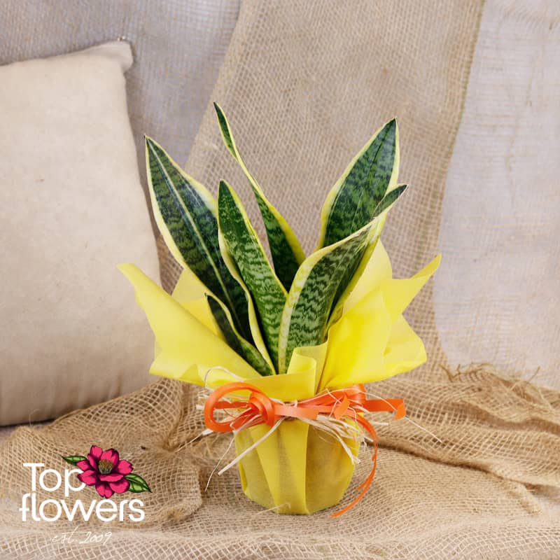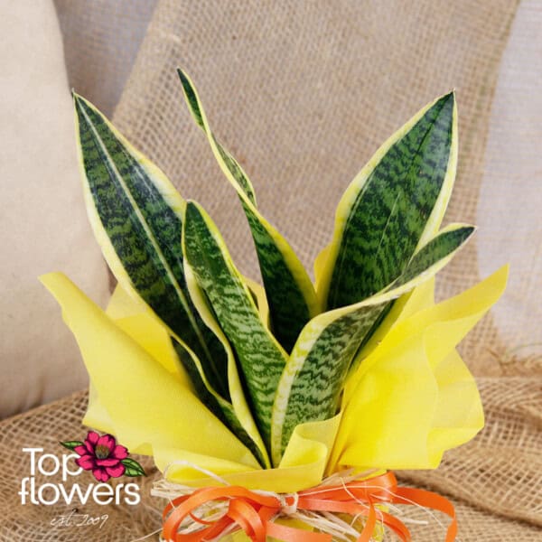 Сансевиера е декоративно растение с ефектни листа, които са изпъстрени в тъмно и светло зелени нюанси.