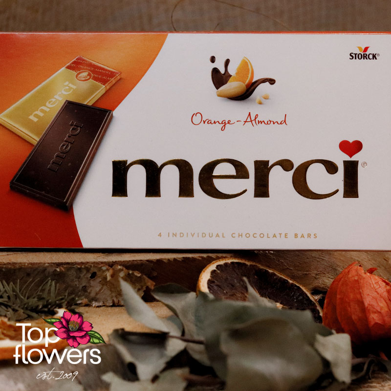 Шоколадови блокчета Merci с неповторимо немско качество,индивидуално опаковани 4 бр. в опаковка с форма на плик.
