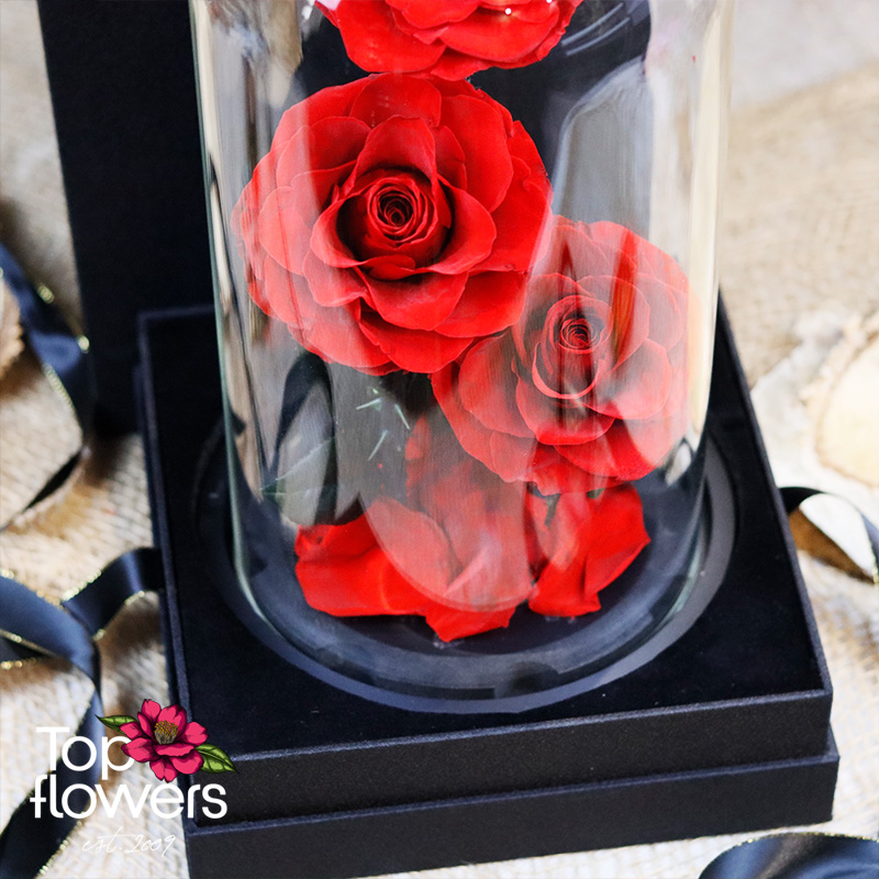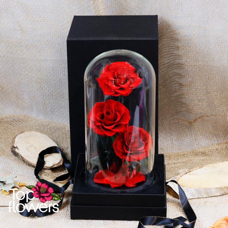 - 3 бр. Вечна роза, дехидратирана и обработена по специална технология за дълготрайност