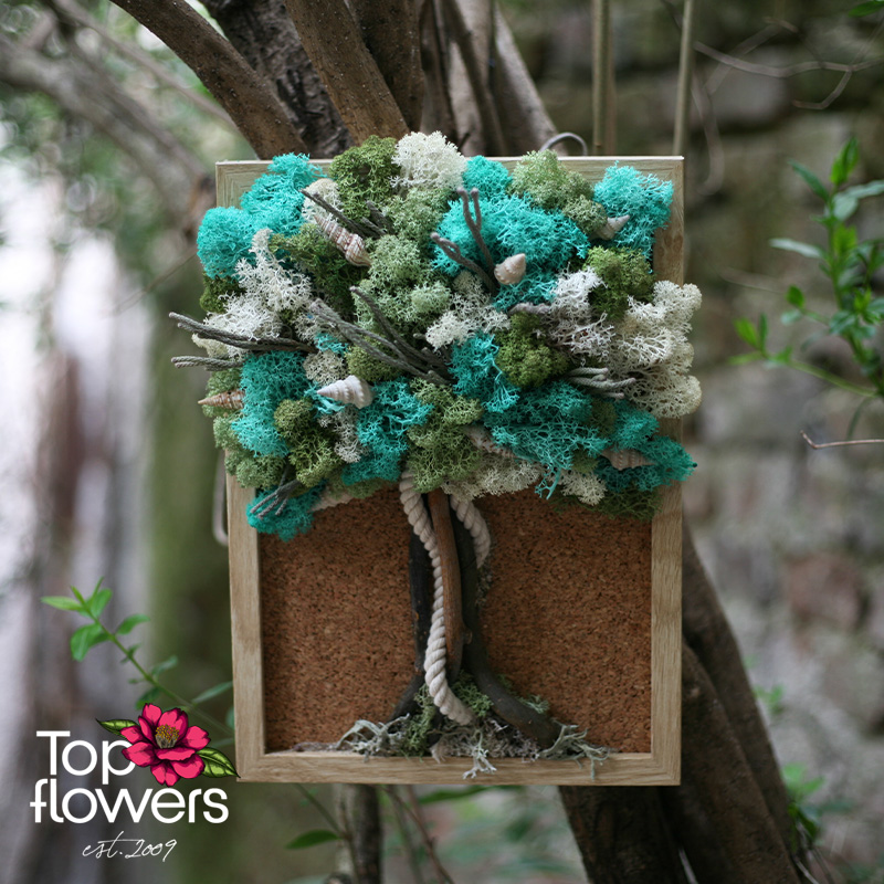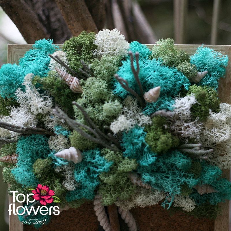 Понякога най-силното въздействие идва от тишината… и от природата. „Морска гора“ е жива картина, която съчетава усещането за свеж морски бриз и спокойствието на гъста гора в едно хармонично цяло. Създадена от скандинавски мъх, естествени материали и фино подбрани декоративни елементи, тази композиция носи баланс, лекота и усещане за дълбочина, което трудно може да бъде описано – то се усеща.